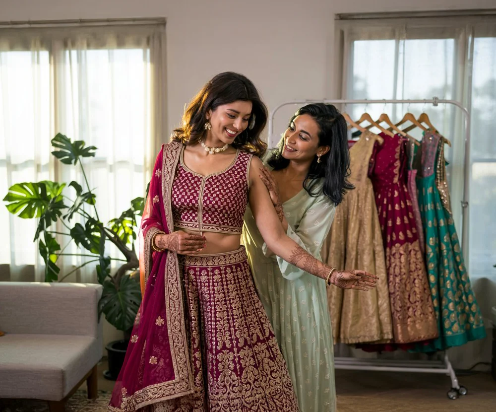 Always dry clean your bridal lehenga or saree and avoid machine/hand wash. Store them properly in a garment bag to keep your dress away from dust and moisture. Refold them occasionally to avoid any fabric damage.